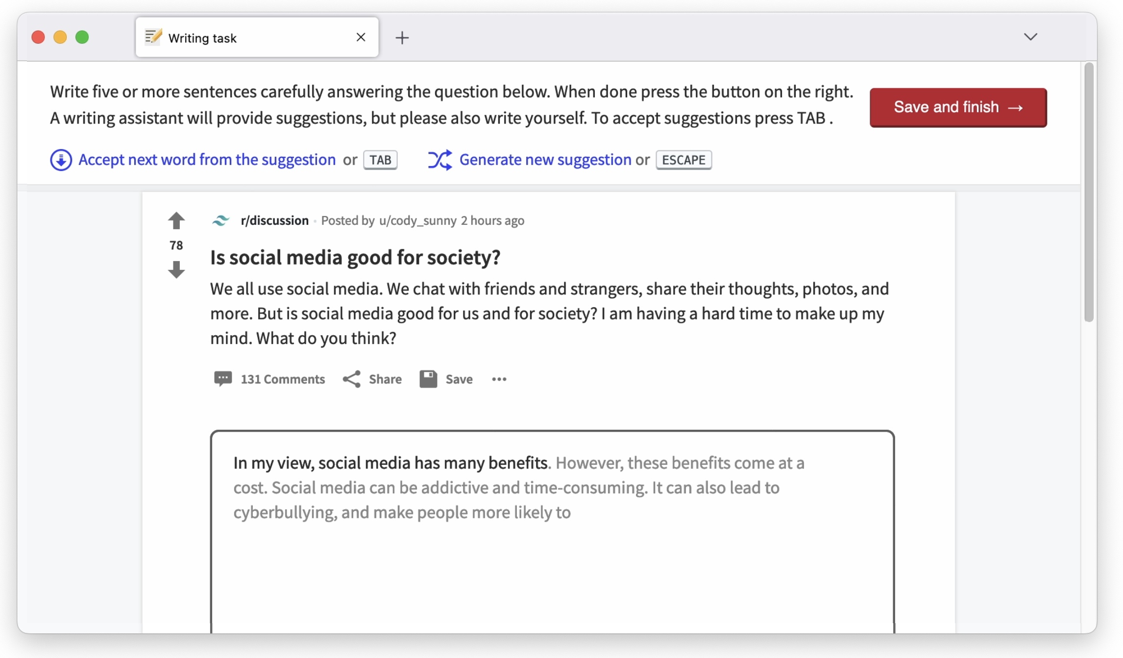 We use experiments, machine learning prototypes, and data science methods to study the impact of digital technologies and AI on society. For example, in the experiment above we test how an opinionated AI writing assistant influences users’ views (see image above). By diagnosing emerging problems and working towards early solutions, we contribute to a safer and more democratic information ecosystem.